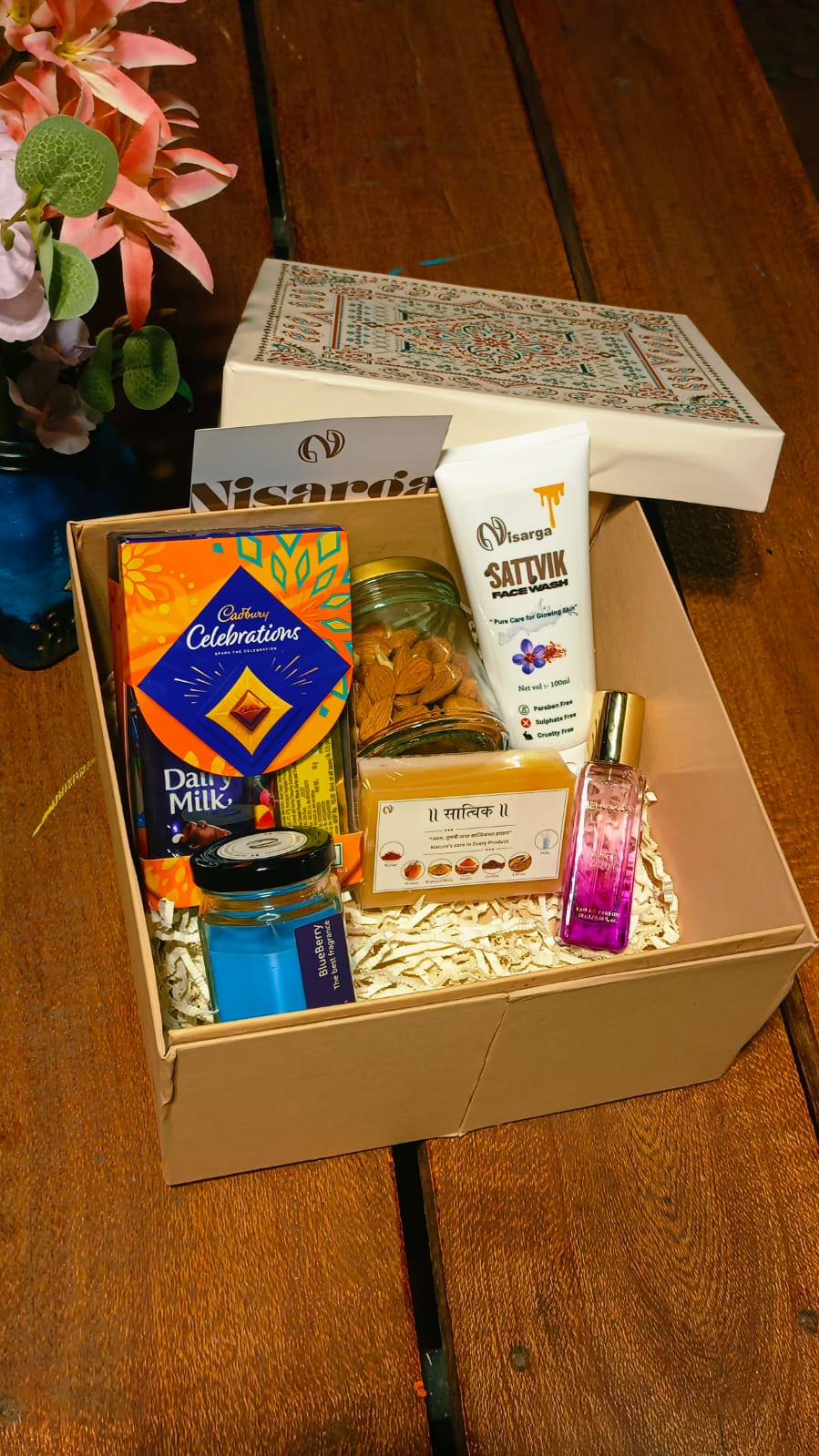 Encased in stunning platinum-themed packaging, it radiates opulence and charm — perfect for elite gifting occasions, corporate events, weddings, or festive celebrations. Each product is carefully chosen to offer a luxurious self-care experience while promoting natural beauty and wellness.